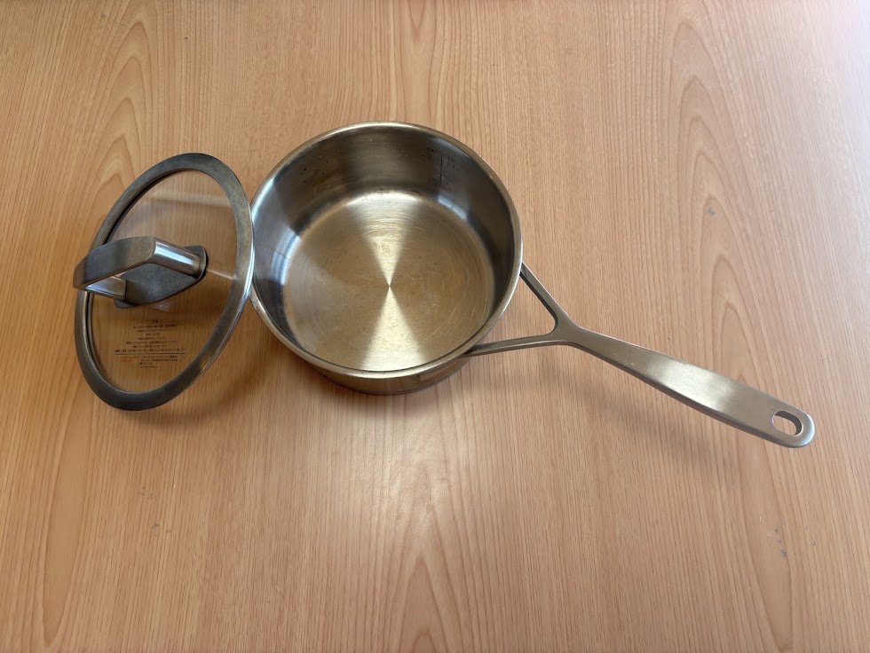 ステンレス製の鍋はテフロン加工に比べると焦げ付きやすいですが、お湯につけてしばらく置いて洗剤で洗うと焦げも落ちて綺麗になります。